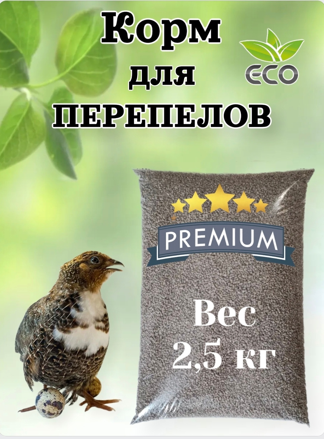 Сбалансированный полнорационный комбикорм для перепелов с 9 недель, в виде крупки из гранул 3 мм., 2.5 кг.